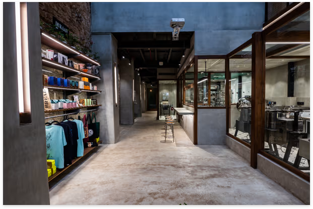 Iterating in SketchUp, the team designed a central atrium flooded with natural light. The ground floor of this space serves as a gallery of the factory, which includes the educational “bean-to-bar” chocolate-making process, a cafe on the mezzanine level, and essential kitchen and service areas tucked away discreetly from the public view.
